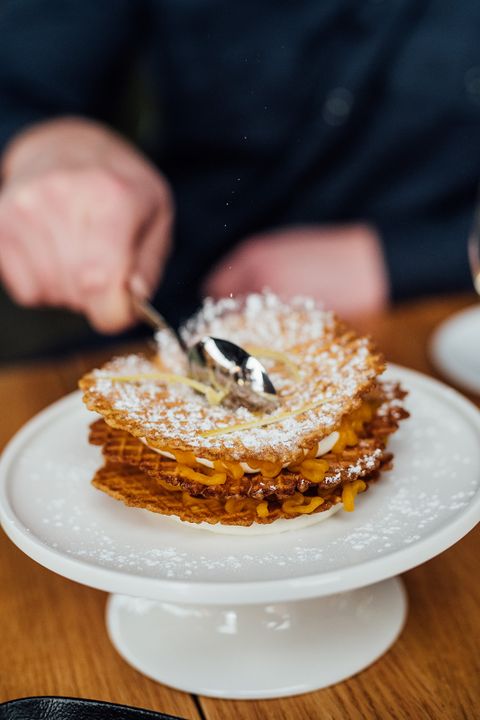 Au fond de la salle, difficile de manquer le grand cellier vitré. Le sommelier Hugo Duchesne, élu Meilleur sommelier du Québec en 2020, a monté pour Annette une carte des vins absolument magnifique, où se côtoient les grands crus et des flacons plus accessibles. «Il y a des trucs hors de prix et des bouteilles à 50-60$», nous confie-t-il. Crus classés, classiques de grandes maisons, vins nature, vins de producteurs locaux ou provenant de terroirs plus atypiques, mais toujours très typés: Hugo nous promet beaucoup de belles découvertes. Plus d’une quarantaine de produits seront offerts au verre; il sera même possible de commander certaines grandes cuvées à l’once.