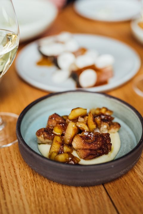 Marc-André a concocté un menu axé sur les produits de saison, composé principalement de petites assiettes à partager. Quelques «snacks» – chips et trempette, huîtres fraîches, croquettes de boudin, mousse de foie de volaille avec gelée de griotte, etc. – et des «entrées» un peu plus substantielles – pensez légumes travaillés, tartares, poissons, plats de pâtes et plats de viandes, le tout préparé avec toute la minutie qu’on connaît du chef.