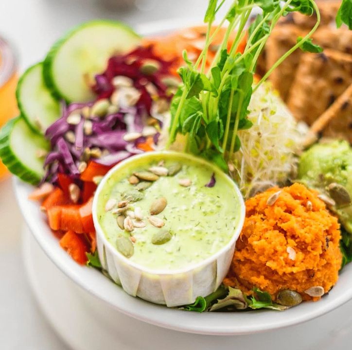 Au-delà de ses préoccupations environnementales, Aux Vivres met toujours la nourriture à l’honneur. Alors que l’entreprise prenait de l’expansion, Marie-Pierre a embauché le chef Michael Makhan. Imprégné de la mentalité Aux Vivres, il est maintenant le propriétaire à part entière de l’entreprise. Tout ce qui entre dans les cuisines du restaurant est biologique, végétal et écoresponsable. L’équipe exprime ses valeurs avec passion au quotidien, en les réaffirmant sans cesse dans chaque plat préparé. Le menu, soigneusement élaboré par Michael, est maintenant un mélange d’influences, de saveurs et de couleurs culinaires provenant du monde entier. Les crêpes dorées, l’assiette mexicaine de burrito et le fameux bol dragon font ainsi partie des plats les plus populaires au menu. On y trouve aussi diverses autres spécialités comme un plateau de « Chana Paratha » et un « Latke Burger ». Cette excellente offre fait de Aux Vivres une des meilleures adresses végé-santé de Montréal, ainsi qu’un des bons restaurants où manger sans gluten.