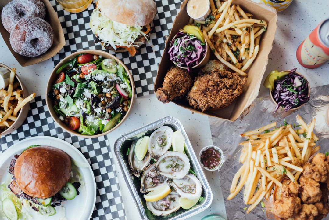 Le menu est grandement inspiré du Pick up et du Alexandraplatz. « On devait avoir un super menu de plats à partager, mais des plats à partager, ce n’est pas très covid-friendly… » L’équipe a donc opté pour une formule individuelle optimale pour les pique-niques. On y trouve deux boîtes pour le pique-nique, cinq sandwichs, des huîtres, des salades et parmis les meilleures frites en ville.