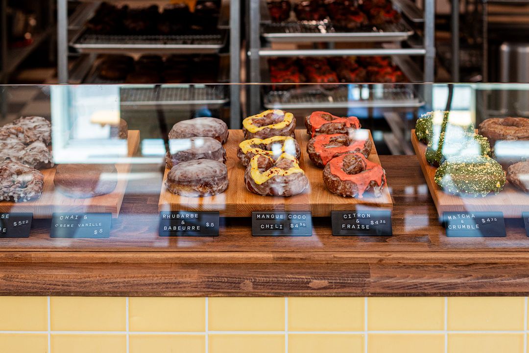 Rachel Berriman est passée par les cuisines de la regrettée Dinette Triple Crown et de la pizzeria Elena, avant de devenir cheffe boulangère chez Larrys et Lawrence. Elle y travaillait avec son amoureux, le chef pâtissier Michael Lottner, qui arrivait pour sa part de chez Patrice Pâtissier. Lorsqu’ils ont quitté Larrys en 2022, ils ont passé près de deux ans à peaufiner leurs recettes, s’inspirant des donut shops américains qu’ils avaient découverts en voyage. Quelques popups forts appréciés plus tard – chez Pumpui et au Nouveau Palais, entre autres -, le couple était enfin prêt à se lancer. « On a fait tellement de tests avant d’ouvrir, on avait une excellente base », résument-ils.