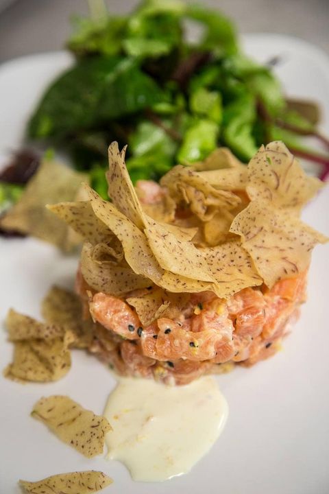 Le menu est vraiment intéressant et le budget est abordable pour le genre d’expérience que vous vivrez. Calculez environ 30 $ par personne pour le midi et 50 $ par personne pour le soir. On a beaucoup aimé, entre autres, le plat de pétoncles, pieuvre et asperges. Si vous êtes fan de tartare et que vous appréciez que les chefs essaient de sortir des terrains battus, vous serez ravis par leurs propositions. Les mardis soir, ils vous offrent quatre choix et nous sommes tombés amoureux du tartare de canard avec cornichons et vieux cheddar. Un vrai délice ! Finalement, vous devez absolument vous garder de la place pour le dessert, car Sophie Vandal, la sous-cheffe, pâtissière de formation, vous en mettra plein la vue.