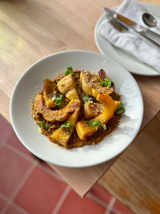 Le menu est divisé en quatre catégories : le bar froid, où l’on trouve des crudos et des huîtres, quelques antipasti, des plats d’accompagnement comme la salade d’endives ou les arancinis au canard et champignons, des pâtes comme leurs pappardelles ripiene, et une section viandes avec leur côtelette de porc, accompagnée de courge delicata, de marrons, de pommes et de beurre noisette. Composé d’une douzaine d’options, le menu propose des prix variant entre 7 $ et 48 $.