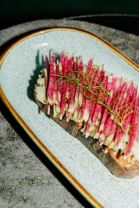 Le menu met de l’avant un univers essentiellement végétarien, nourrissant et léger. On y croise des clins d’œil aux traditions d’Europe de l’Est — comme un bagel garni d’une croquette de légumes racines ou encore le bun à la cardamome.