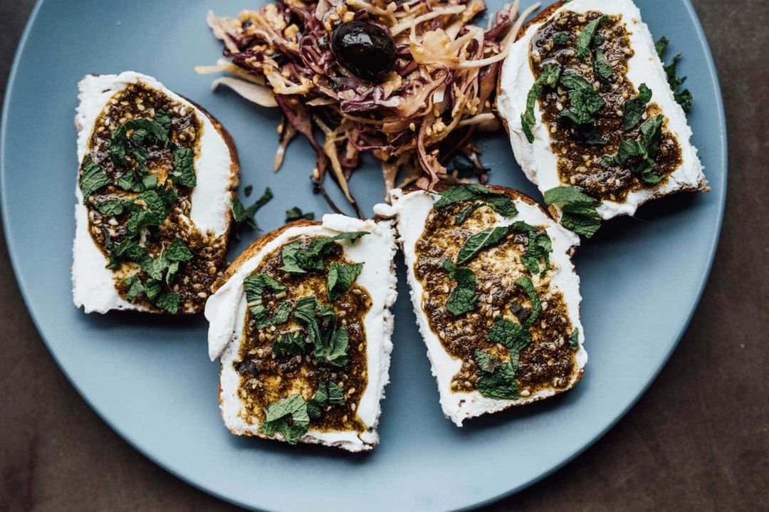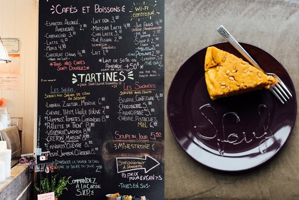 “Sfouf” est un gâteau libanais végétalien de semoule de blé, de curcuma, de noix de pins et d’eau — qui est servi comme spécialité au café Sfouf. Au menu du Sfouf, on trouve des cafés, boissons chaudes, gâteaux maison, tartines garnies salées ou sucrées entre 6 et 9 $. Le menu y est simple, mais bon! « Je n’ai pas de formation en cuisine; je voulais avoir un menu facilement modulable sans prétention, mais de qualité. L’idée des tartines était donc d’offrir quelque chose de simple et facile à changer pour accommoder les goûts des gens selon les saisons… et bien sûr, ceux des enfants. »