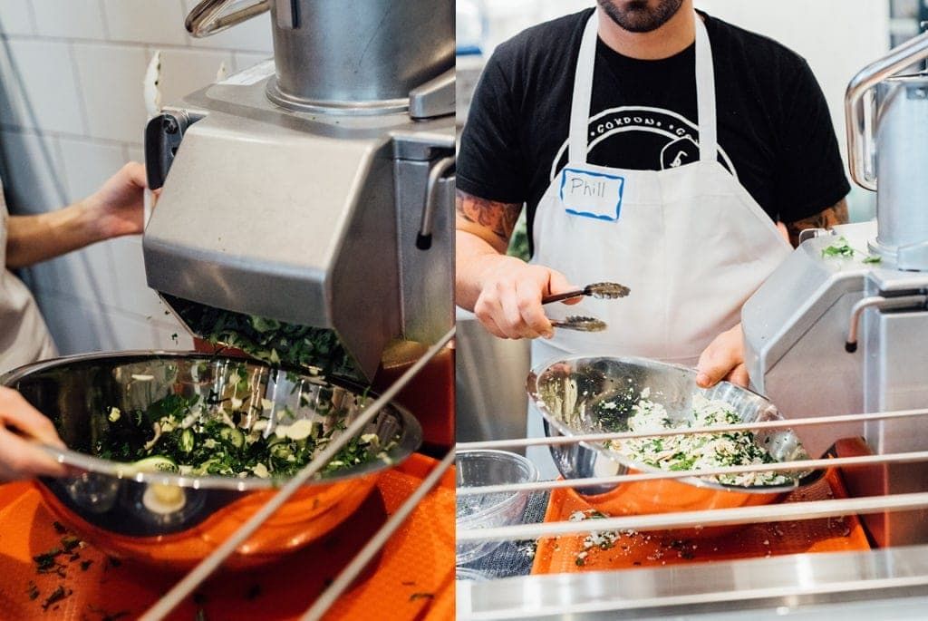 Ils pensent donc une machine infaillible : « on voulait inventer une chaine de bouffe qu’on peut rapidement transformer : on s’est vraiment penché sur la question de mécanisation d’un resto, comme si on était General Motors. La mécanique de Foodchain est ultra pensée, organisée et contrôlée. Ça veut dire pas de plonge, pas de gaz, pas de ventilation. On a éliminé les protéines et éliminé une gestion de fou. On se concentre juste sur des légumes, et des bons légumes. »