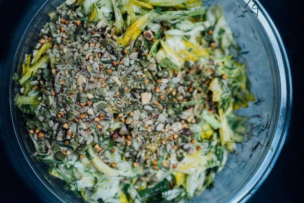 (12,5 $), Concombre Pickle — fromage, menthe, persil, rabiole, radis, échalote, sauce moutarde