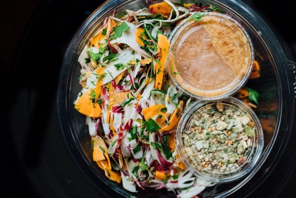 Le légume est donc le bijou du Foodchain. Les ingrédients de chaque plat sont assemblés entiers dans des bols. Lors de la commande, ceux-ci sont coupés pour offrir une fraîcheur surprenante! « C’est comme si je travaillais avec 10 000 mandolines capables de faire des plats en 1 minute. La seconde où tu commandes, le robot coupe à la seconde suivante les ingrédients, ce qui amène un niveau qualitatif fou! » Foodchain offre ainsi des plats de légumes frais, consistants et abordables.