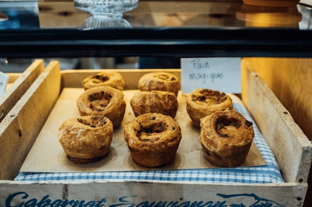 En plus des légumes, on trouve le pain magique de Jeffrey de la boulangerie Hof Kelsten. « C’est fait avec de la pâte a croissant, des oignons caramélisés et de la crotte de fromage. Je voulais un pain où les gens n’auraient pas besoin d’huile ni de beurre, c’est ce que Jeffrey a créé » — Pain magique 3,75$.
