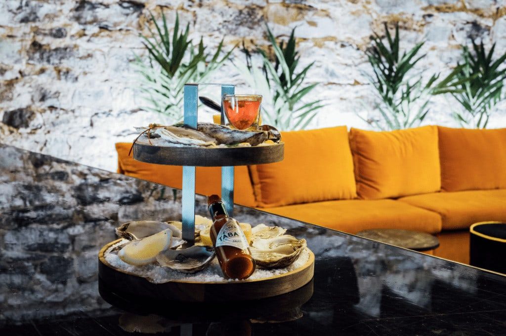 À boire, on retrouve les mêmes nombreux champagnes du Birdbar et la sélection de vins du restaurant. Les cocktails de l’établissement sont maison et pensés par l’équipe. Le menu du Henden bar est dans la même veine que le Bird bar, mais revisité. Il a été dessiné pour l’espace : facile à manger avec les doigts et qui accompagne bien des cocktails. On y trouve entre autres des huîtres, une station de caviar, blinis, bouchées de macaroni à la truffe, petits hot-dogs, etc.