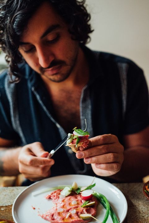Les propriétaires, Soufian Mamlouk (Barley, Lulu Épicerie), Noah Abecassis, Rami El Sabban et Omar Boubess ont longuement peaufiné le concept du restaurant. Tout à été travaillé au détail près pour offrir aux Montréalaises et aux Montréalais une expérience hors du commun. Le menu de Héni est évolutif et rend hommage aux récoltes saisonnières du Québec à travers des recettes traditionnelles de la cuisine de l’Ancien Monde. Nous avons été complètement séduits par les saveurs et les textures des plats travaillés avec finesse. Les produits fins sont mis de l’avant de main de maître par le chef Julien Robillard (anciennement chef du Pastel et chef exécutif de l’hôtel Le St-James) et sa brigade. «On souhaitait reprendre les recettes de nos grand-parents, mais les travailler avec les produits de notre nouvelle maison (le Québec) afin de représenter cette riche culture», souligne Noah. Ils utilisent strictement les produits du terroir et adaptent les recettes familiales aux ingrédients disponibles ici. C’était primordial pour eux. Le menu est audacieux, moderne et invite au voyage en conservant l’intégrité des recettes traditionnelles, mais sans tout de même nous dépayser. On retrouve des techniques raffinées de préservation jusqu’à la carte des cocktails créée par Émile Archambault.