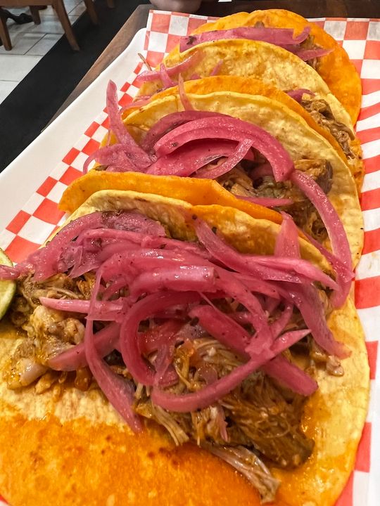 Et quelles recettes! Le menu de La Toxica est concis et tout y est absolument succulent. «On a essayé beaucoup d’assiettes et on a juste gardé les meilleurs vendeurs», explique Rosa. Des tacos birria (parmi les meilleurs tacos de Montréal) aux tacos de crevettes, en passant par les tacos cochinita pibil (une recette de porc rôti très lentement dont l’origine remonte aux Mayas — nos préférés) et les généreuses quesadillas, le menu nous transporte au Mexique avec ses goûts recherchés et sa fraîcheur. En plus, les portions sont si généreuses que l’adresse se vaut une place dans notre liste des meilleurs restaurants beaux, bons et pas chers.