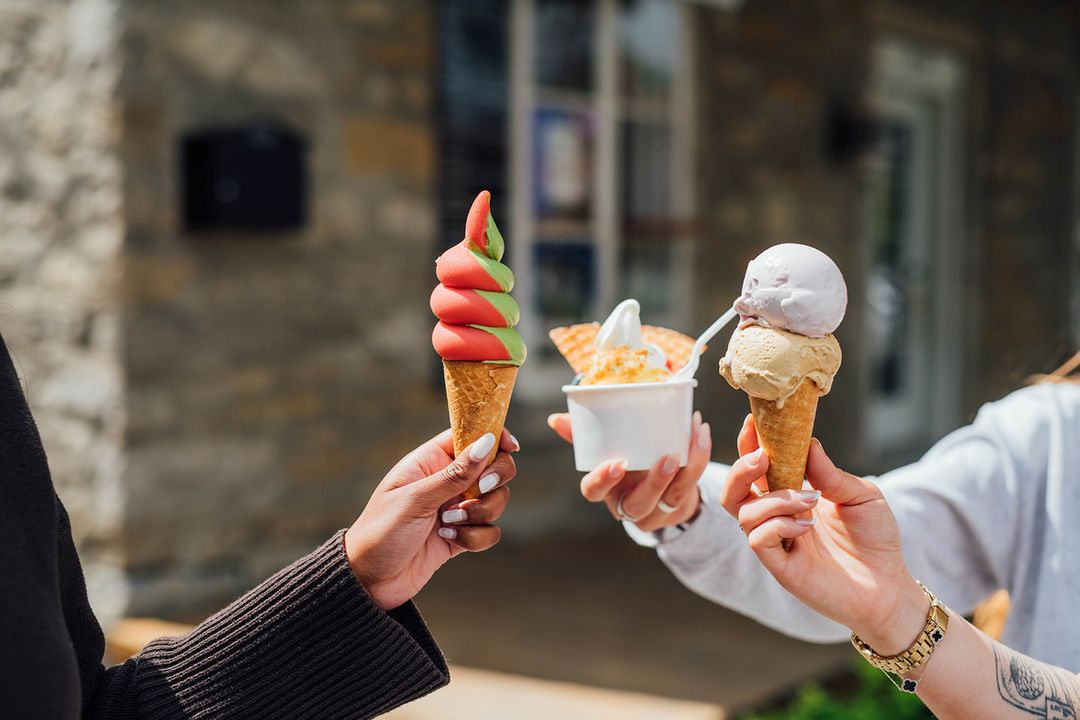 Bien que l’intérieur du commerce ne soit pas accessible, le comptoir extérieur offre une expérience chaleureuse. David recommande d’ailleurs de déguster sa glace en s’installant près de la rivière, juste en face — pour savourer le moment avec une vue imprenable.