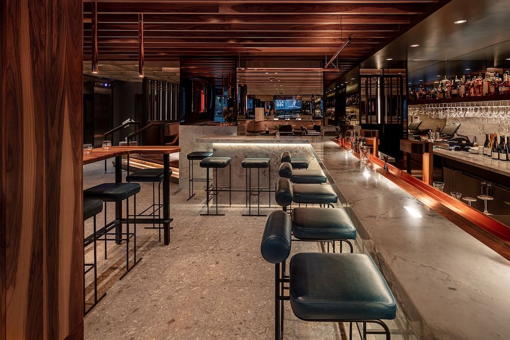 Le menu du bar est plus restreint que celui du restaurant mais garde un esprit brasserie française. Pour faire dans la simplicité conviviale, l’établissement propose des plateaux d’huîtres fraîches et des compositions de charcuterie et de fromage. Pour les plus grosses faims, le chef David Pellizzari prépare des classiques de bistro parisien. Pensez escargots et beurre à l’ail, crème brûlée aux pois verts, soupe à l’oignon, tartares, etc.