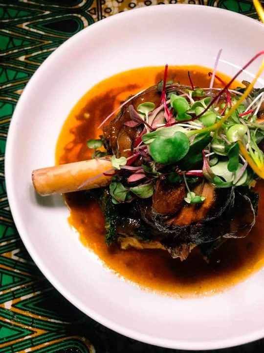 En cuisine, Maria-José prépare des plats où les saveurs africaines rencontrent le terroir québécois, mais il n’est pas question de cuisine fusion. Le Virunga propose une expérience culinaire remplie de découvertes pour tout le monde, membres de la diaspora africaine inclus ! La maison privilégie les produits québécois, car l’idée de s’approvisionner localement est centrale à la cuisine africaine. Le duo a poussé les producteurs québécois à lui offrir des produits qu’il est inhabituel d’utiliser et à tirer profit de l’entièreté des bêtes qu’ils élèvent. C’est pourquoi, par exemple, on trouve sur le menu de la viande de chèvre et de la queue de bœuf. La cheffe offre une courte carte — une douzaine de plats au maximum — qui évolue rapidement et fait vivre de délicieux voyages ! De plus, la maison est fière de constamment offrir une option végétalienne.