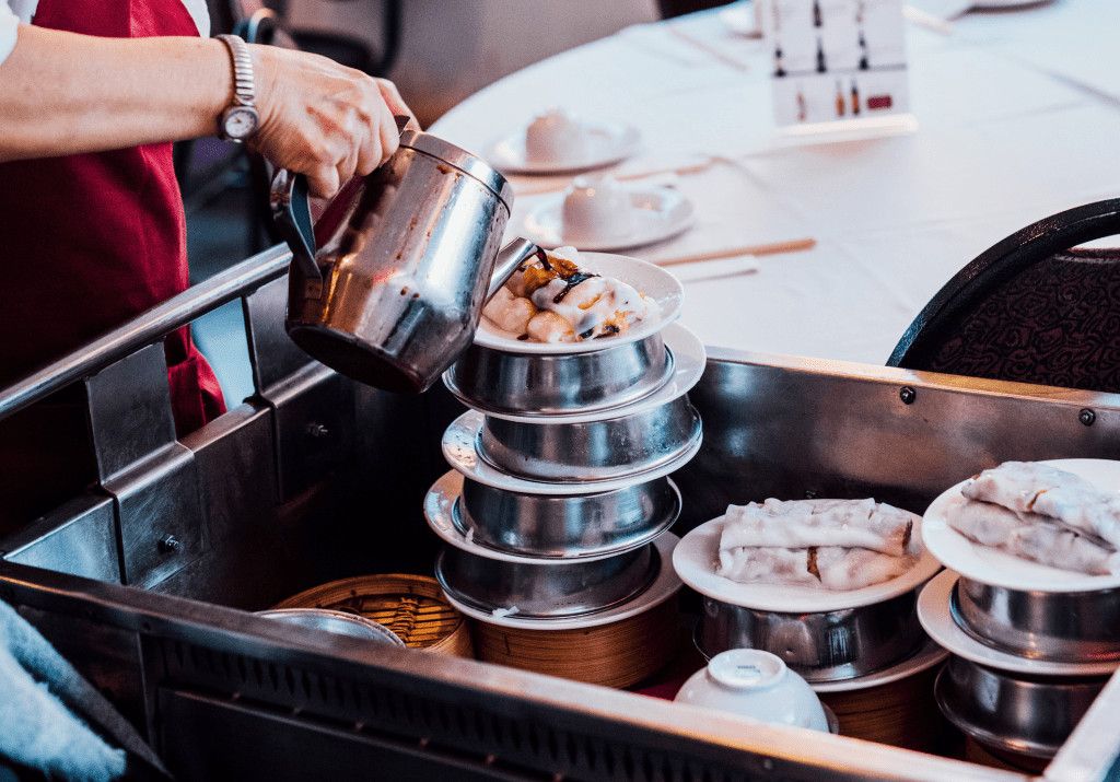 Pour ce qui est de la nourriture… par où commencer? Le menu est le même depuis les débuts du restaurant Kam Fung. On vous conseille cependant d’y aller pour les dim sum, qui est en quelque sorte le brunch des Chinois. Les serveurs se promènent de table en table avec des chariots remplis de nourriture exquise et font découvrir des saveurs et textures que vous ne pourriez goûter uniquement dans les pays d’origine de madame Kwan. Le dim sum est offert 7 jours sur 7 tous les matins et le soir, le menu devient à la carte et les options n’y manquent pas non plus! Vous trouvez ici un très grand choix de dumplings vapeur ou frit, de pieds de poulet frits, de tripes, de congee (un gruau de riz garni d’un œuf de 100 ans), de tofu soyeux au sirop de gingembre, etc. Si vous êtes terrorisés par cette énumération, soyez sans crainte : il y a aussi des choix plus conventionnels comme des dumplings de porc, crevettes, des plats de poulet général Tao ou du pad thaï.