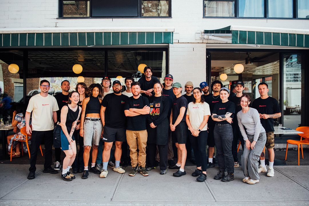Pourquoi autant de chaleur ? La réponse est évidente quand on regarde l’équipe de quatre propriétaires naviguée entre les tables du nouveau café. Vito Ciocca (Bremner et Garde-Manger), James Baran (Bremner, Garde-Manger, Park et A5), Tyler Maher (Foxy et Monkland Taverne) et Alex Ragoussis (Crew Collective) sont des visages connus du paysage gastronomique montréalais. Leur objectif était d’offrir à Griffintown un endroit où la simplicité règne et où clientes et clients sont accueillis comme des amis. Pour ce faire, le quatuor s’est tourné vers le nom Mano Cornuto, une référence à un pendentif d’une main qui imite les cornes de Satan supposé renvoyer le mauvais sort au sol.