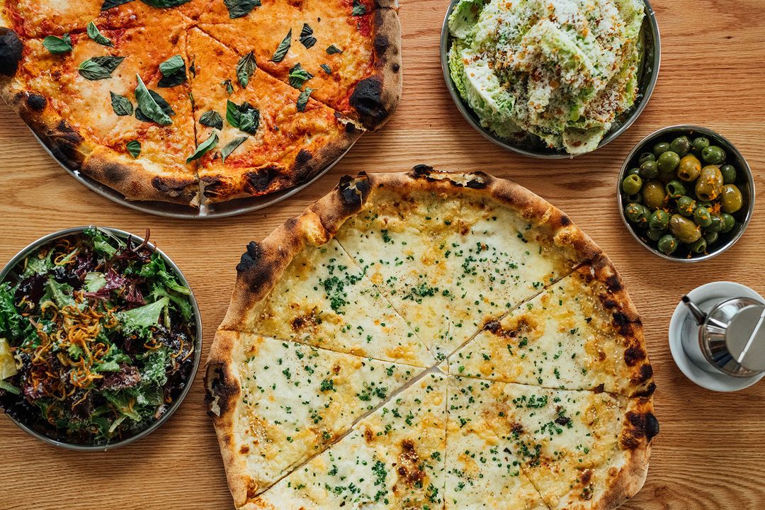 Le concept du restaurant est axé sur le partage, avec une variété de pizzas savoureuses conçues pour rassembler la communauté autour d’un repas décontracté et convivial. On trouve ici d’excellentes pizzas: margherita (délicieuse et très fromagée!), pepperoni (gros coup de cœur), saucisse, marinera et bianca (une autre de nos préférées!), toutes offertes entre 20-30$ en format 16″. Avec cinq pizzas au menu, dont une nouveauté chaque mois, Maps Pizza propose des options pour tous les goûts. Les recettes sont le fruit du travail des deux propriétaires, qui ont perfectionné leurs techniques de cuisson pour offrir des pizzas de qualité supérieure. L’adresse propose aussi deux salades – César (parmi les meilleures salades césar en ville!) ou verte – ainsi qu’un excellent pain au levain maison. À boire, on trouve des sodas et quelques vins et bières à venir.