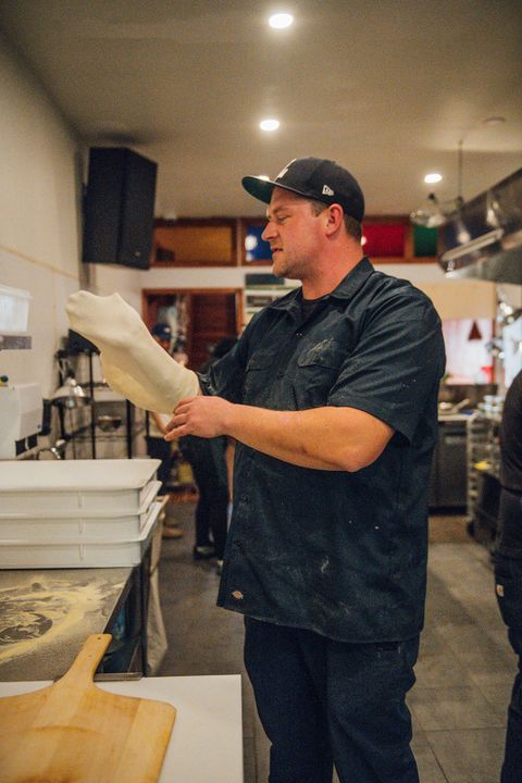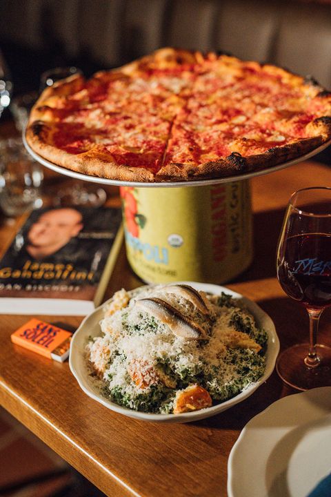 Le chef Alex Geoffrion prépare un menu inspiré du «style New Jersey». «J’adore les States!», nous lance-t-il. «J’ai fait un menu avec des choses que je trouve réconfortantes et sans prétention.» Pizzas, casino clams (palourdes servies sur la coquille avec chapelure et bacon) et salade César surmontée de deux beaux filets d’anchois sont quelques-uns des classiques que vous trouverez au menu.