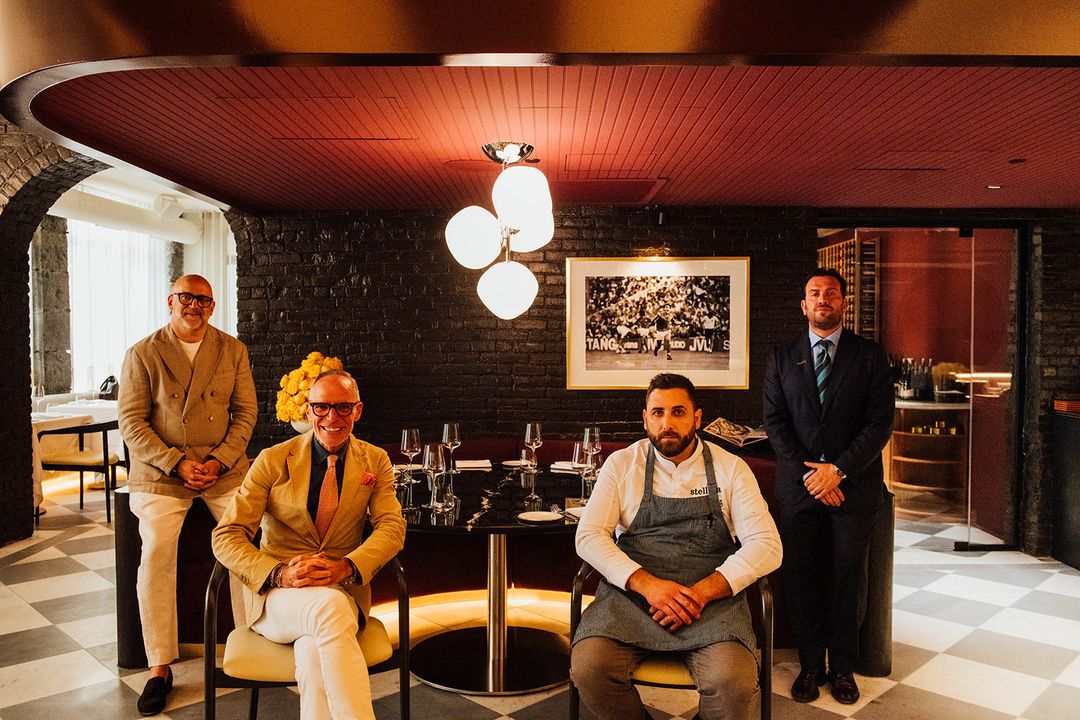 Mare est un projet ambitieux, le “grand frère” du Stellina, comme l’a décrit Massimo Lecas, copropriétaire. L’espace, conçu par Sid Lee Architecture, est à la hauteur de l’ambition du projet. L’espace se divise en trois zones : un bar à cocktails intime et feutré, un bar à cru, ainsi qu’une très élégante salle à manger. Le stylisme, réalisé par Kayla Pongrac, est à la fois moderne et classique, avec des éléments rappelant la beauté intemporelle de l’Italie. Les murs sont ornés de photographies iconiques de figures italiennes – gracieuseté d’Alessandra Salituri, consultante en art. L’identité visuelle, quant à elle, a été imaginée et développée par le studio AWP (As We Proceed), qui signe la stratégie de marque, le logo, le langage visuel, la direction artistique, ainsi que la conception des menus, des uniformes, de la vaisselle personnalisée et de la signalétique. Le design de Mare est un mélange parfait de luxe discret et de confort, avec une attention portée à chaque détail, du mobilier au choix des matériaux. C’est le genre d’endroit où l’on a envie de revêtir son plus beau kit, de se laisser aller et de profiter de la soirée dans un cadre qui allie modernité et tradition.