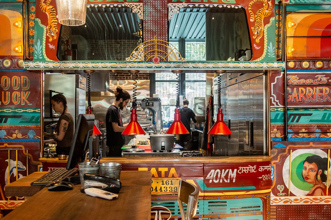 La façade de la cuisine est probablement l’élément le plus intéressant du décor de ce restaurant. Cette dernière est une incarnation d’un camion de transport indien, un emblème du pays.