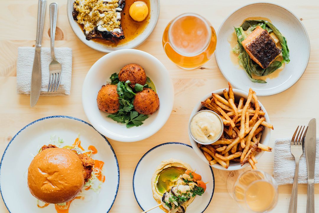 On y retrouve une cuisine de marché décontractée qui ne manque jamais de personnalité. La carte se décline en trois temps — snacks, plats et desserts — avec des propositions qui évoluent au fil des arrivages des petites fermes avec lesquelles l’équipe travaille, et de l’humeur créative en cuisine. Mieux vaut ne pas trop s’attacher à un plat en particulier : la pleurote BBQ avec sa peau de poulet et son œuf confit, ou les pappardelles au jus de carotte et fond de volaille pourraient bien être revisitées le lendemain. L’équipe garde aussi une belle ouverture à l’improvisation et n’hésitera pas, par exemple, à transformer un plat pour qu’il devienne végé selon les envies de la table.