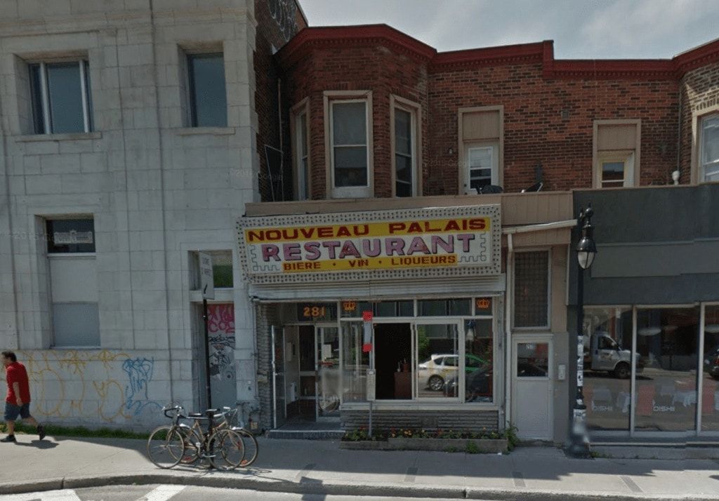 En fait, le restaurant “The Palace” a ouvert au 281 rue Bernard en 1950. Quelques années plus tard, le restaurant change de propriétaires et modernise son nom pour “The New Palace”. Dans les années 1980, avec la loi 101, le restaurant change de nom pour “Le Nouveau Palais” et lorsque les propriétaires Jacques Séguin et Mary-Martha Campbell reprennent le restaurant en 2010, ils décident de garder le nom.