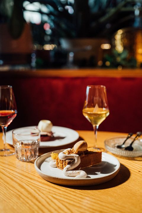Côté boissons, le Ratafia propose une solide carte de cocktails, régulièrement renouvelée. La carte des vins, soigneusement élaborée par Jared, met en avant ses coups de cœur, allant des vins classiques à des choix plus funky, principalement issus du Nord de l’Italie et de la Bourgogne. Il y a de tout pour tous les budgets. Le restaurant se distingue par sa vaste sélection de vins de dessert et propose des accords pour les plats salés autant que sucrés.