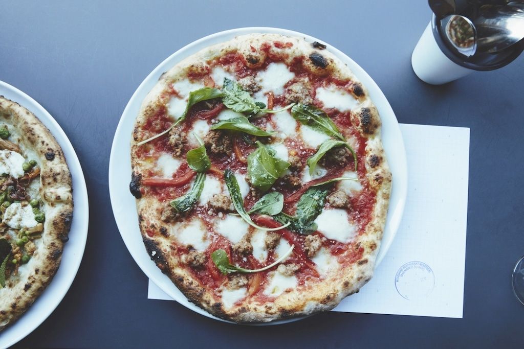 Ensuite, au niveau du menu, la cuisine proposée est à tout à fait à la hauteur du style annoncé. C’est le chef de renommée Frédéric St-Aubin — ex-chef de 357 pendant 10 ans (!) — qui est le chef du restaurant Moleskine. On trouve une cuisine simple, mais très bien faite, axée sur le take out et ouverte midis et soirs. On peut y déguster des pizzas, (parmi les meilleures !) des salades, sandwichs, etc. Mais aussi des plats plus costauds : pâtes, poissons et viandes. Les desserts sont également mémorables, surtout celui au chocolat ainsi que le tiramisu.