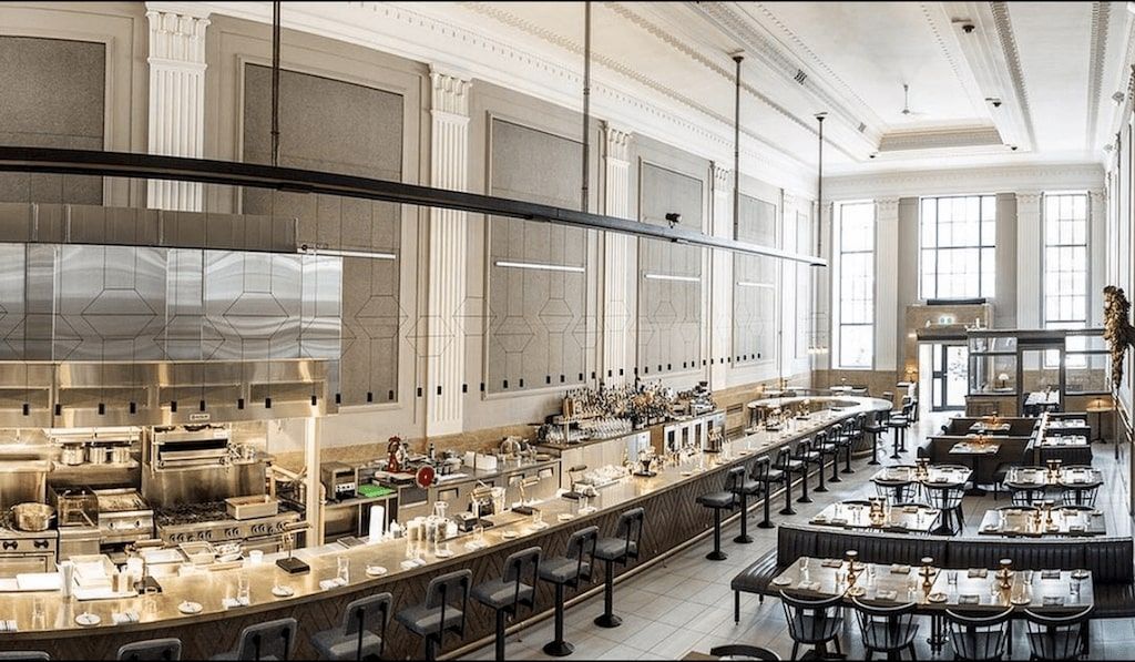 Situé dans les somptueux et impressionnants lieux d’une ancienne banque sur la rue Sparks, le restaurant envoûte d’entrée de jeu par son décor grandiose et ses détails néo-classiques. Construit en 1869, la bâtisse respire l’histoire grâce à ses immenses fenêtres, aux ornements de marbre et aux murs lambrissés. La vaste salle plongée dans la lumière laisse entrevoir une cuisine ouverte flamboyante et un superbe bar qui s’étend à perte de vue. Le décor résonne avec succès, pouvoir et histoire.