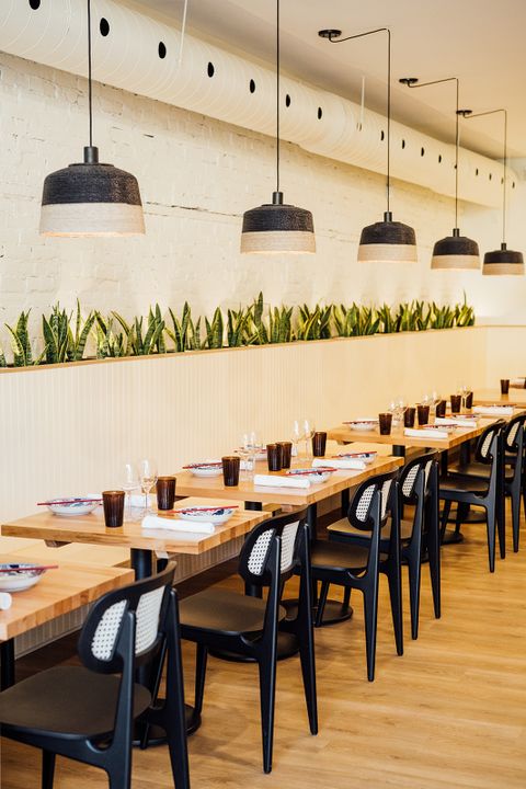 Chic et contemporain, le décor sans prétention s’inspire des restaurants qu’il a visités en Asie. On ressent cette influence dans les luminaires en rotin, la présence de bois et la verdure prédominante.