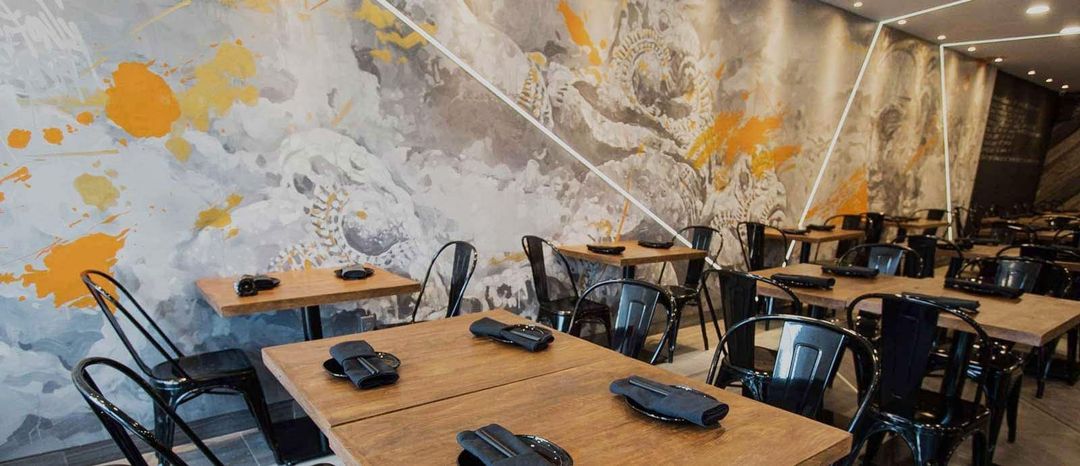 Au niveau du décor, les trois amis avaient une idée de ce qu’ils voulaient — comme la grande murale qui fait tout le resto — mais ont engagé Mylène Ho, une amie, pour les aider à créer l’espace. Les 57 places sont étalées sur toute la salle en long, sur plusieurs tables basses en bois et sur quelques tabourets au bar. L’ambiance est ici festive, les couples comme les groupes viennent pour passer un moment convivial et agréable.