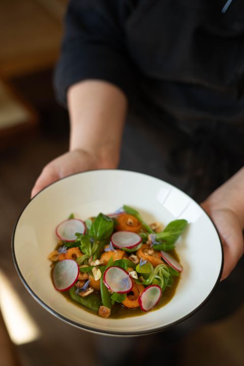 À ses côtés, Eleazar Morad, copropriétaire et chef sommelier d’origine colombienne, gère le front of house avec une maîtrise incontestable. Issu d’une famille où la gastronomie est sacrée, Eleazar a été formé dans les plus grandes écoles de vin et a travaillé dans des établissements étoilés à travers l’Espagne et la Colombie. Son approche de l’art de la table et du vin est simple mais raffinée : il veut que chaque invité profite pleinement de l’instant, sans avoir à se ruiner. Sa carte des vins, soigneusement sélectionnée, propose des petites productions d’artisans passionnés aux côtés de grands classiques, permettant à tous de se retrouver autour d’un bon verre.