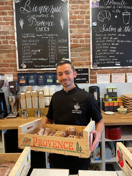 Nans Roche (propriétaire) et Alexis Pelisson (chef pâtissier) n’essaient pas de réinventer la pâtisserie. Les petits délices sucrés que vous retrouverez chez Un Instant en Provence sont tous des grands classiques français : mille-feuille, Paris-Brest, tarte citron meringuée, flan à la vanille, pain au chocolat, chouquette, éclair à la lavande, et bien plus encore. « Nous nous distinguons par la qualité des matières premières utilisées pour la confection de nos pâtisseries et viennoiseries. Tout est préparé sur place avec amour et des ingrédients majoritairement locaux », explique le propriétaire.