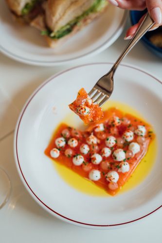An Italian café in Griffintown, Mano Cornuto has been hugely popular since it opened. The atmosphere is so welcoming it feels like everyone knows each other. Every day, the team makes its own focaccia in-house. These oven-baked flatbreads are served with a spread of your choice (truffle honey, fig jam, or apricot jam) and ricotta. The rest of the menu is designed to showcase excellent local and Italian products: a few pasta dishes, colourful salads, two generous sandwiches (one available in a vegetarian version), great pastries, and plates of salami or crudo. For dessert, the kitchen serves a delicious doughnut that rounds off any meal perfectly.