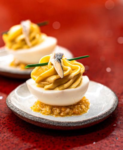 What makes a great deviled egg? First, impeccable egg cooking: a tender white, never rubbery. Then the filling—light and airy yet full of flavor, rich without being heavy. And above all, that little twist that makes you want to grab another… and another, often at the expense of the main course. It’s the appetizer you order “for the table,” only to end up guarding jealously.