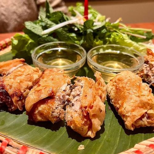 Over time, nems have travelled and evolved into countless variations: crab, chicken, shrimp, vegetarian versions, and classic pork-based recipes. They are traditionally enjoyed wrapped in lettuce leaves with fresh herbs like mint or Thai basil, then dipped in a sweet–salty nuoc cham sauce for the perfect balance of crunch, freshness, and umami.