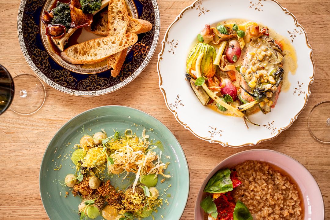 During our visit, we had the pleasure of tasting a well-executed leek vinaigrette appetizer, featuring a purée of leek greens and a mustard and camelina vinaigrette. The risotto of the day was fresh, made with tomato water and labneh, complemented by a generous portion of burrata and fresh tomatoes. The fish of the day was Quebec salmon, served with a creamy corn sauce, sautéed vegetables, and a stuffed zucchini flower. Finally, the marrow bone, served on a demi-glace of beef and accompanied by marinated chanterelles and a parsley garnish, was splendid. As promised, our plates showcased comforting flavors featuring fresh ingredients.