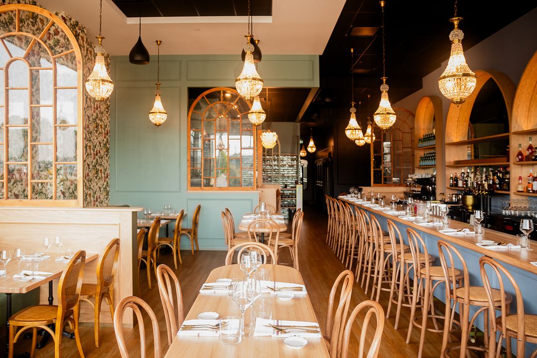 The lively ambiance, high ceilings, and grand arches that separate the sections of the restaurant are enhanced by the natural light streaming through the large windows. Every detail of the décor has been carefully considered: “I even took it a step further: there are exactly 16 seats at the bar, 16 chandeliers on the ceiling, each 16 feet high!” revealed Julien, the co-owner, with evident pride. It was through close collaboration with Nicola Tardif from Taktik Design that the extravagant character of Bistro Le Louis XVI came to life. The unique touch? The massive wooden arches with molded glass windows salvaged from a church in Bas-du-Fleuve.