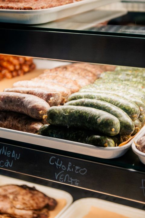 Unlike a regular butcher shop, Boucherie Lawrence has a rather cozy feel, and that’s thanks to Sefi and Annika Krausz who designed the space. From the outside, you can see the sign, and a window that is fogged up in the winter and lit up in the summer. When you enter the butcher shop, you’ll find a table full of local products that are waiting to be enjoyed and (re)discovered. All products are made by local artisans and are available in small quantities. “Meeting these small producers is so exciting, because they themselves are so passionate about their product that it’s hard not to get excited about them too! We’re often among the first stores to offer their products so it’s rewarding to start working with them.” At the back of the shop, there are fridges stocked with other products and homemade specialities to take away, including kimchi and Bolognese sauce.