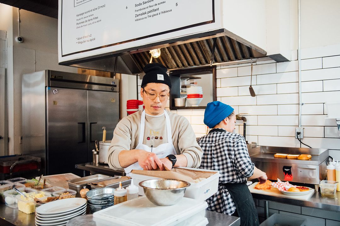 Hiroshi Kitano was born in Japan, where he began cooking at the age of 17. After spending a few years in New York, he ended up in Montreal and immediately fell in love with the city. The self-taught chef opened three restaurants in quick succession with his former partner, Hanhak Kim: Otto Yakitori, Bistro Otto, and Bar Otto. After the opening of the latter, Hiroshi decided to return to his roots and separate from the Otto group. Bistro Otto then became Kitano Shokudo, which is now one of our favorite Japanese restaurants in Montreal. It was here that the chef formed a friendship with Samath Mom, who manages the dining room while Hiroshi handles the kitchen.