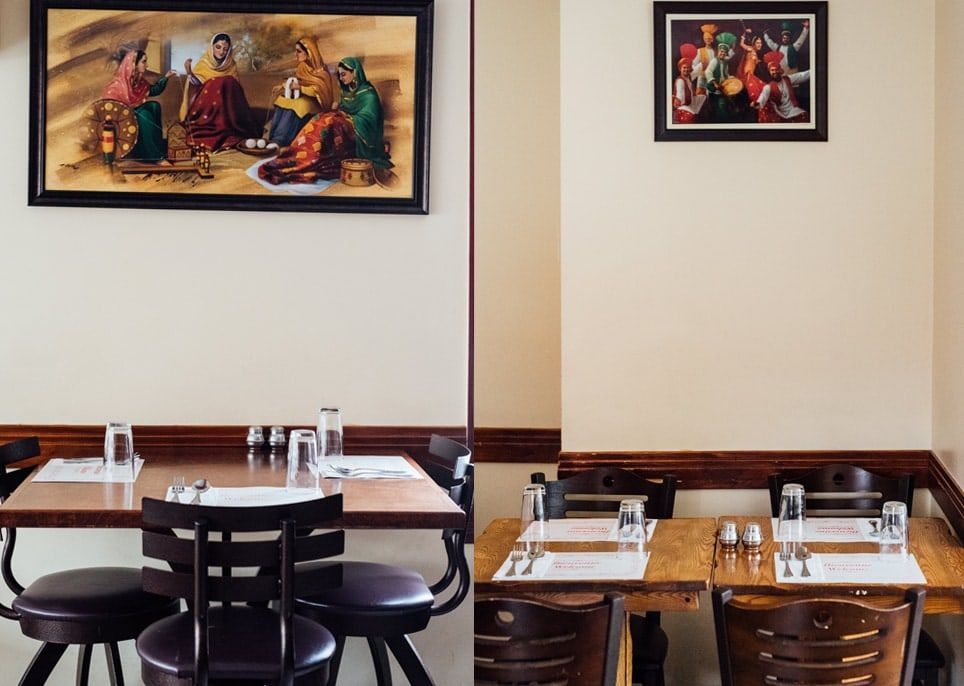 Like many Indian restaurants in the area, Chand Palace offers its guests good food in a simple decor. The space seats about 20 and you are welcomed into a dining area with high and low wooden tables, surrounded by sturdy chairs. The beige walls of the restaurant are hung with some colorful artworks of an Indian nature and there’s another nod to India with the hanging ceiling lamps. When you pay your bill at the small window, check out the kitchen because this is where all those wonderful Indian aromas are being created. Due to the small space, you might have to « cozy up » at Chand Palace, but for a relaxed evening, the restaurant is clean and the staff are courteous and efficient.