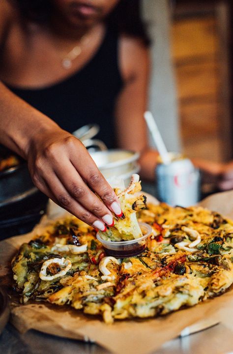 At Daldongnae, you’ll find classic Korean bbq, one of the most popular Korean culinary traditions the world over. The restaurant doesn’t reinvent the wheel, but it does offer consistency. You choose your meat, vegetables and side dishes, then the team brings them to you and fires up the grill. You can choose from a wide variety of cuts of pork, beef or wagyu (a vegan option is also available) as well as an array of starter dishes, such as the spicy stew with soft tofu, delicious and full of flavour. The seafood and spring onion crêpe also won us over, and we highly recommend it. To accompany the protein, apart from the grilled vegetables, you have a choice of side dishes, from kimchi to corn and cheese to omelette. So get grilling!