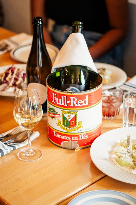 Matthew’s project took shape in the space of a dépanneur that was in rough shape. With the help of friends and family, Matthew renovated the place and put a lot of love into it. From the large table, to the door handles – everything here is second-hand, except for some kitchen equipment. “The small TV on the bar, I found in the floor… with two DVDs,” he laughs. To him, these are items that have life in them, and that add life to the space. Matthew wasn’t planning on opening a restaurant so soon, but after losing his job at Mousso last March, he had plenty of time to focus on his project. He figured that people wouldn’t stop eating with the pandemic and that his project would travel well to be enjoyed at home.