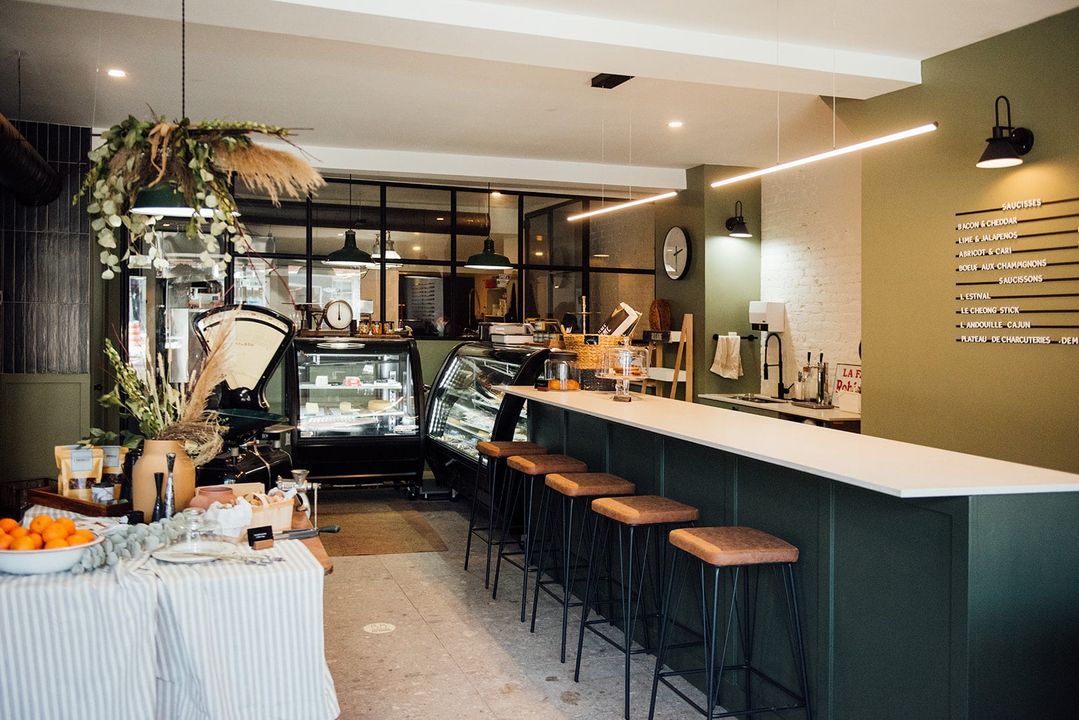 The décor nods to butcher shops in Brooklyn and the general shops of the time. The green-clad walls and wood accents create a warm and inviting atmosphere. The large glass kitchen offers a view of the drying room for the charcuterie. During the summer, a lovely terrace with thirty seats is located on Avenue de Gaspé.