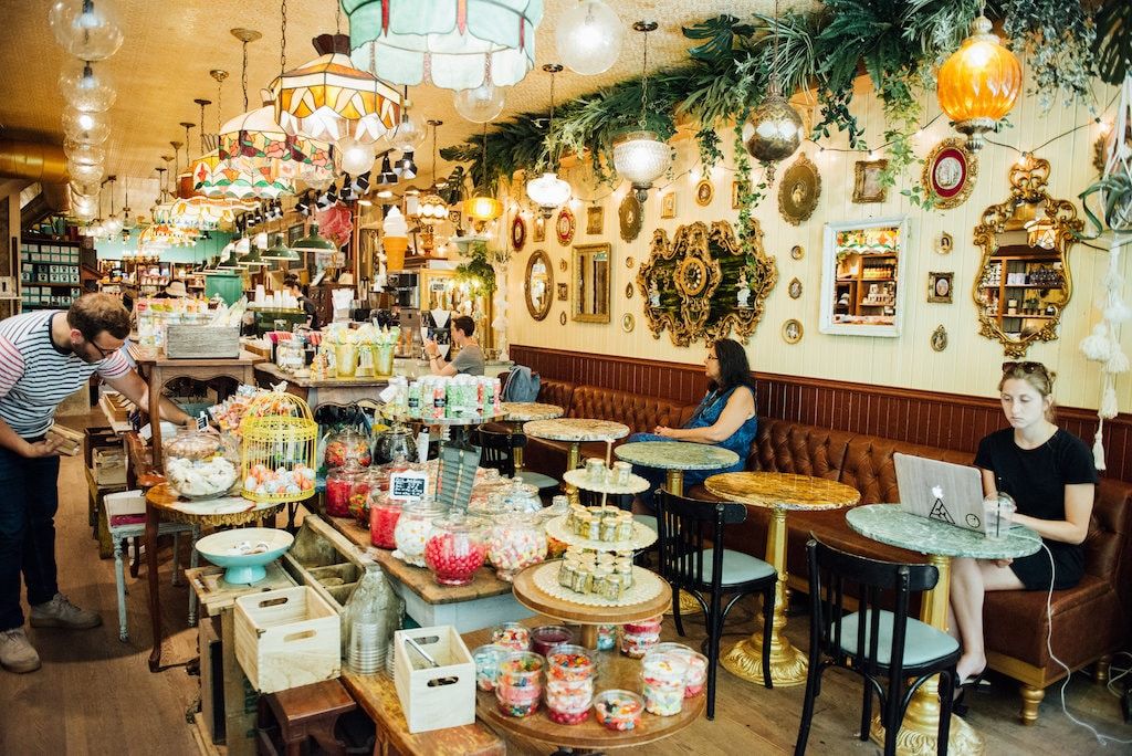 The 24 seat space was designed by Thomas Csano, the same designer who created the original Le Petit Dep (he is also responsible for some of our other favourites, including Le Majestique and Le Darling). With all of the colourful products and décor elements, not to mention the rows upon rows of candies and sweets, being in Le Petit Dep can feel a bit like being a kid in a candy store. Mismatched light fixtures hang from the ceiling and add an eclectic feel to space. A long wooden counter space that looks onto rue Saint-Sulpice is the perfect seat to people watch while you enjoy your meal.