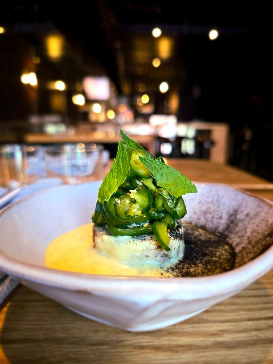 The decor, designed by the Blazys Gerard studio (also behind Dandy in Old Montreal), features a modern and slightly industrial ambiance. A huge mural depicting an octopus dominates one of the walls, while the others showcase dark tones. The tables are well-lit, and part of the restaurant is bathed in a purple glow from the neon sign. The 44 seats, offering comfort for both couples and groups. The attentive staff is there to guide you in choosing drinks and dishes, based on your preferences.