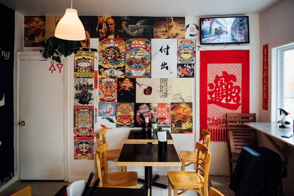 To be able to eat there, however, you must first find the place. With a very small door, it is easy to miss this little gem. Upon entering, one is immediately surprised by the smallness of the room, simply decorated with Hong Kong inspired prints, carefully selected by the owner Zhuoyao Li.