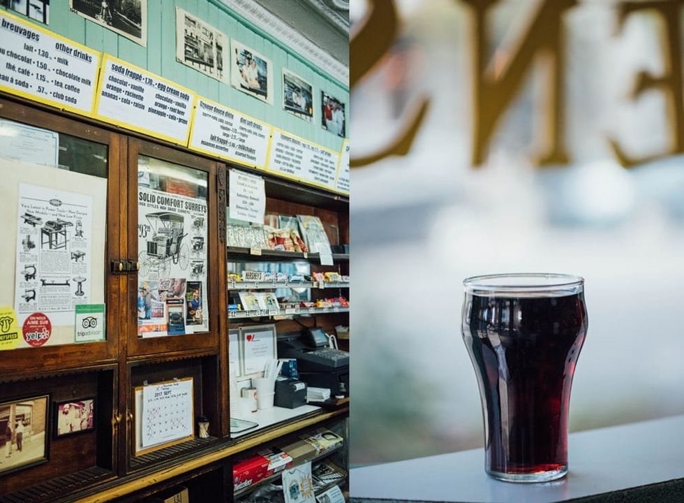 Originally a dépanneur, the space was later divided to accommodate a hair salon. The children of the owners, in charge of the front of the store, offered cigarettes and cigars to customers as well as hot dogs and beverages at the counter. The embossed tin ceiling, Kik Cola clock, bell cash register, old-fashioned soda fountain, and the grills that have been in operation for over seventy years are a testament to the authenticity of the place. Originally seating ten people, the restaurant is now down to nine, with one of the seats replaced to offer take-out service.