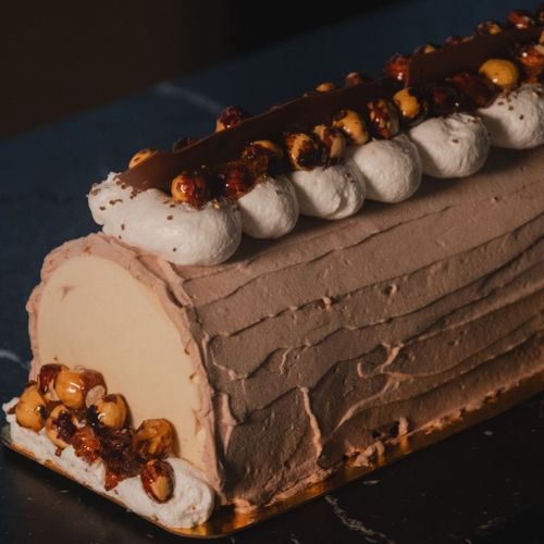 Délicieux marchand de glaces montréalais, les Givrés propose plusieurs bûches glacées chaque Noël. La “Feu de camp” mélange caramel, amandes et chocolat autour d’un cœur de guimauve grillée. La “Juste du Sorbet” vous gâte avec des saveurs de mangue, framboise et citron sur une génoise à la vanille et gelée de groseille. Les Givrées propose aussi une bûche végane et sans gluten “La Végane”, avec sorbet framboise, glaces au caramel et chocolat et génoise sans gluten. Pour terminer, la plus créative de tous, la “Bûche Iglu” fait avec crèmes glacées érable et vanille, une génoise à la vanille et de la sauce au caramel, des blocs de guimauves montés pièces sur pièces. Découvrez toutes ces bûches et commandez les sur le site de la maison.